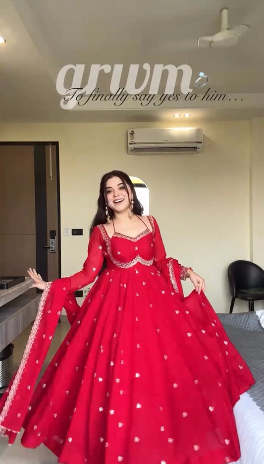 RED RITUAL GEORGETTE BASE ANARKALI GOWN SET OF 3